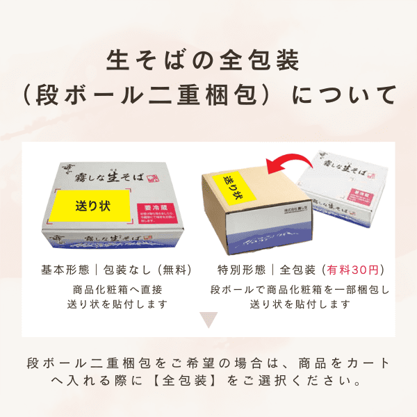 *本商品は包装紙でのお包みができません。生そば専用化粧箱にてご用意します。
