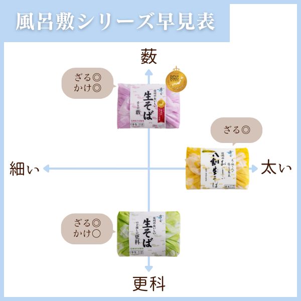 大人気の風呂敷シリーズ三種の蕎麦の特徴