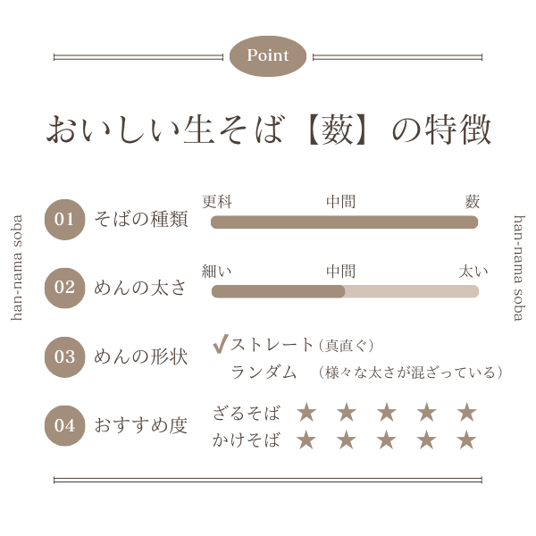 風味·コシ·食感·のど越しのバランスがよく、ざるそば·かけそばともにおすすめです。